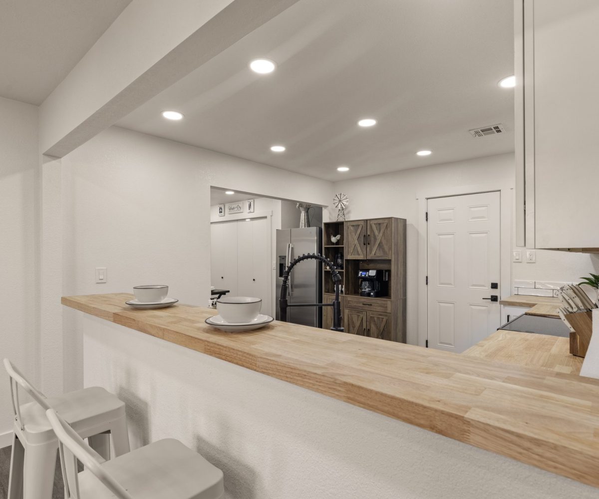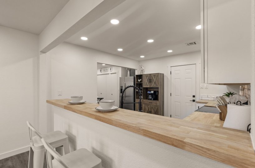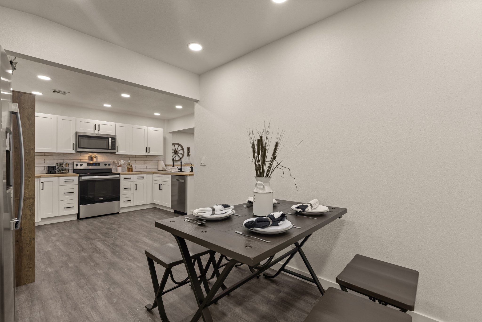 Enjoy the comforts and convenience of the fully equipped kitchen with stainless steel appliances, tile backsplash, modern cabinetry and countertops.Â
