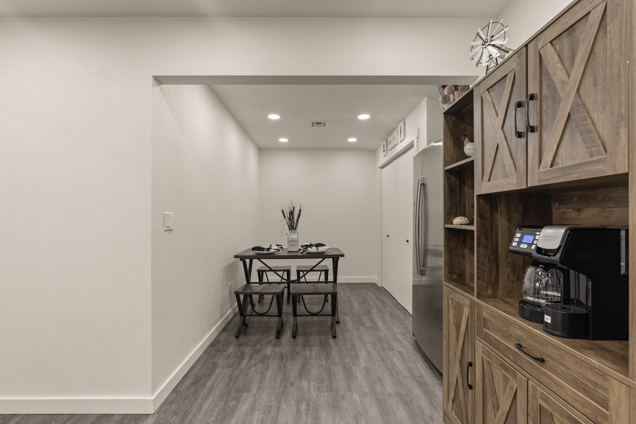 The home features plank style flooring throughout and has a full size-side-by-side washer & dryer.