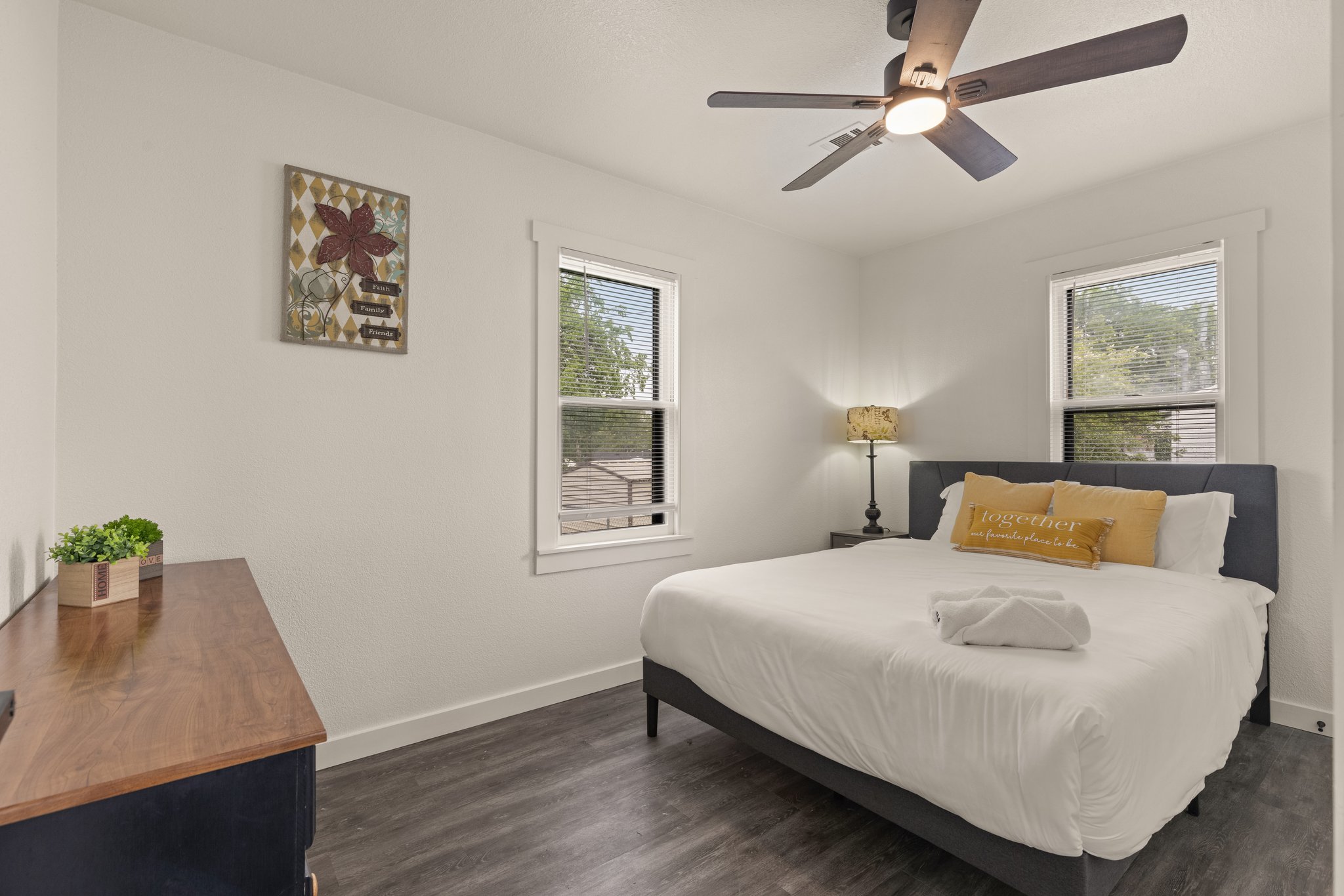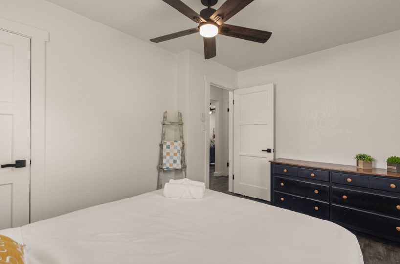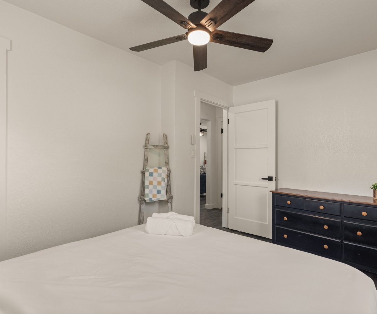 Just bring your suitcase! Furnishings, housewares (pots & pans, kitchen utensils) linens (bed linens, bath linens) utilities and WIFI are included. It has a one car attached garage and additional driveway parking. The large and spacious backyard in fenced.Â